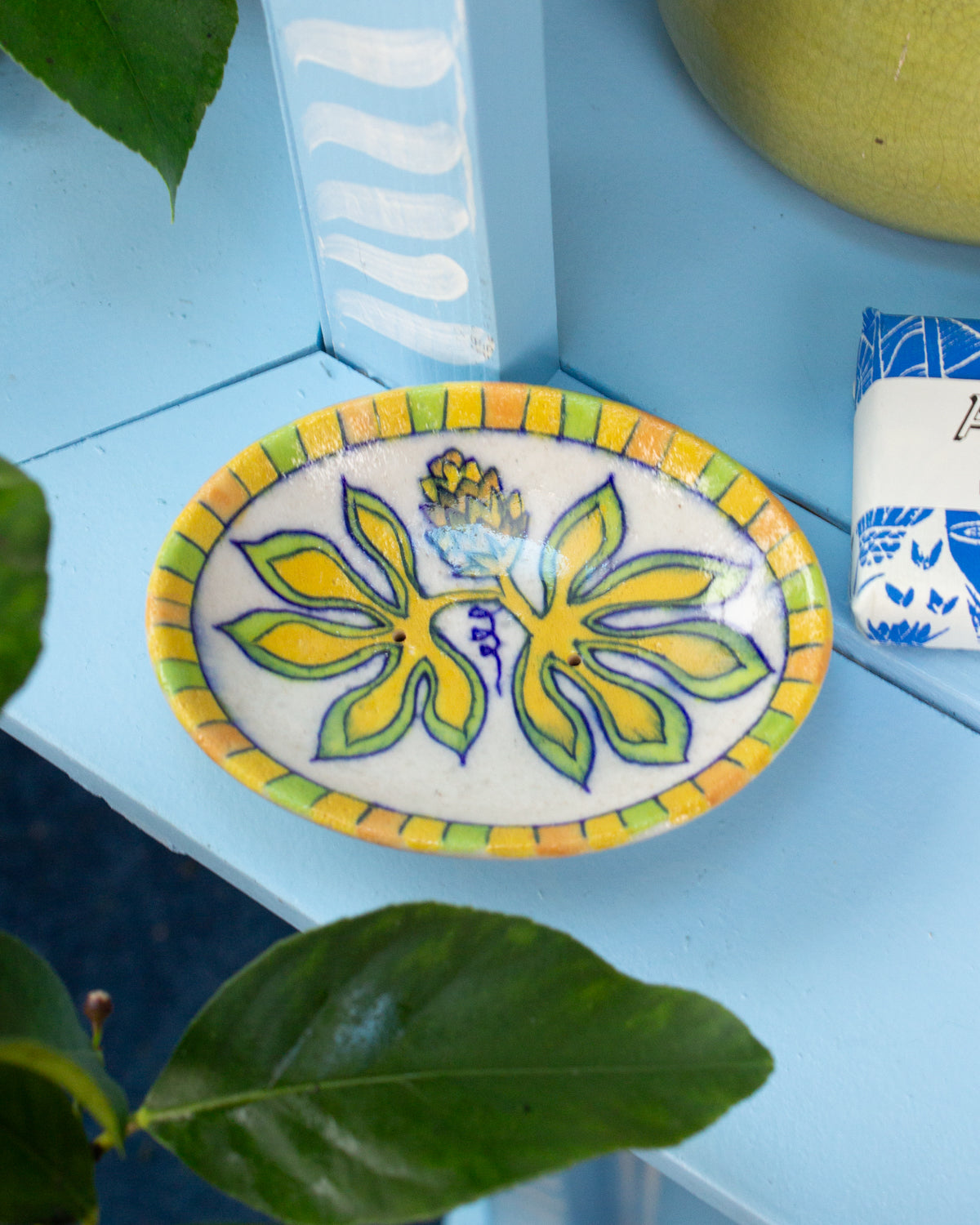 PRE-ORDER Jaipur Hand Painted Indian Soap Dish 'Passion Flower'