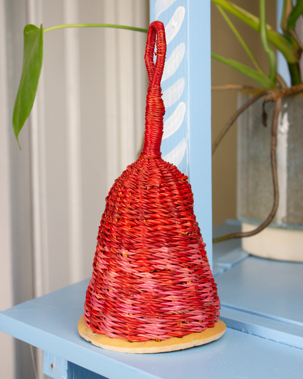 Ghanaian Hand Woven Musical Shaker 'Red & Pink Check'