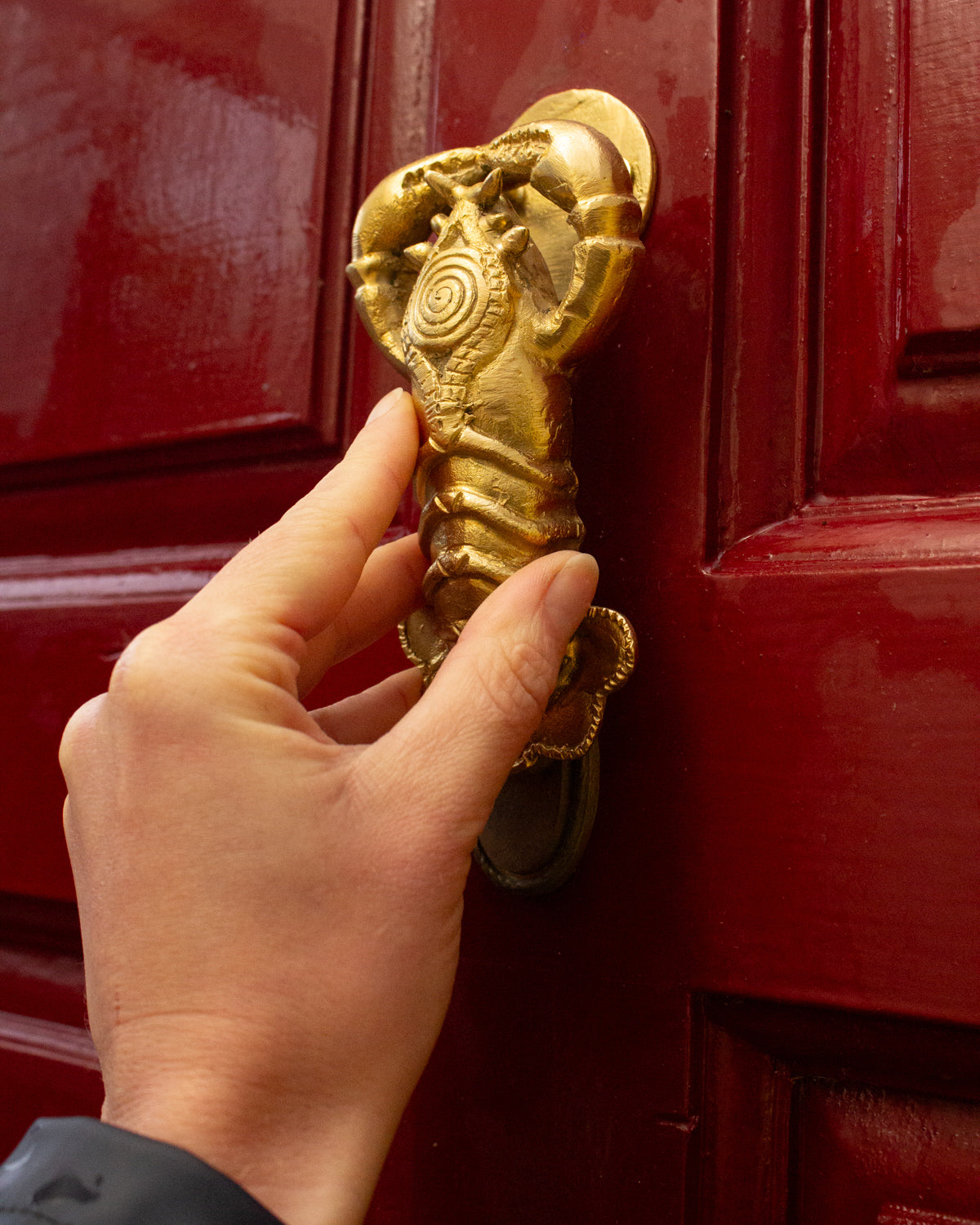 Polish your solid brass knocker using Brasso (always follow the instructions on the bottle), or by covering half a lemon with salt and rubbing it onto the knocker. Rinse well and dry with a soft cloth.