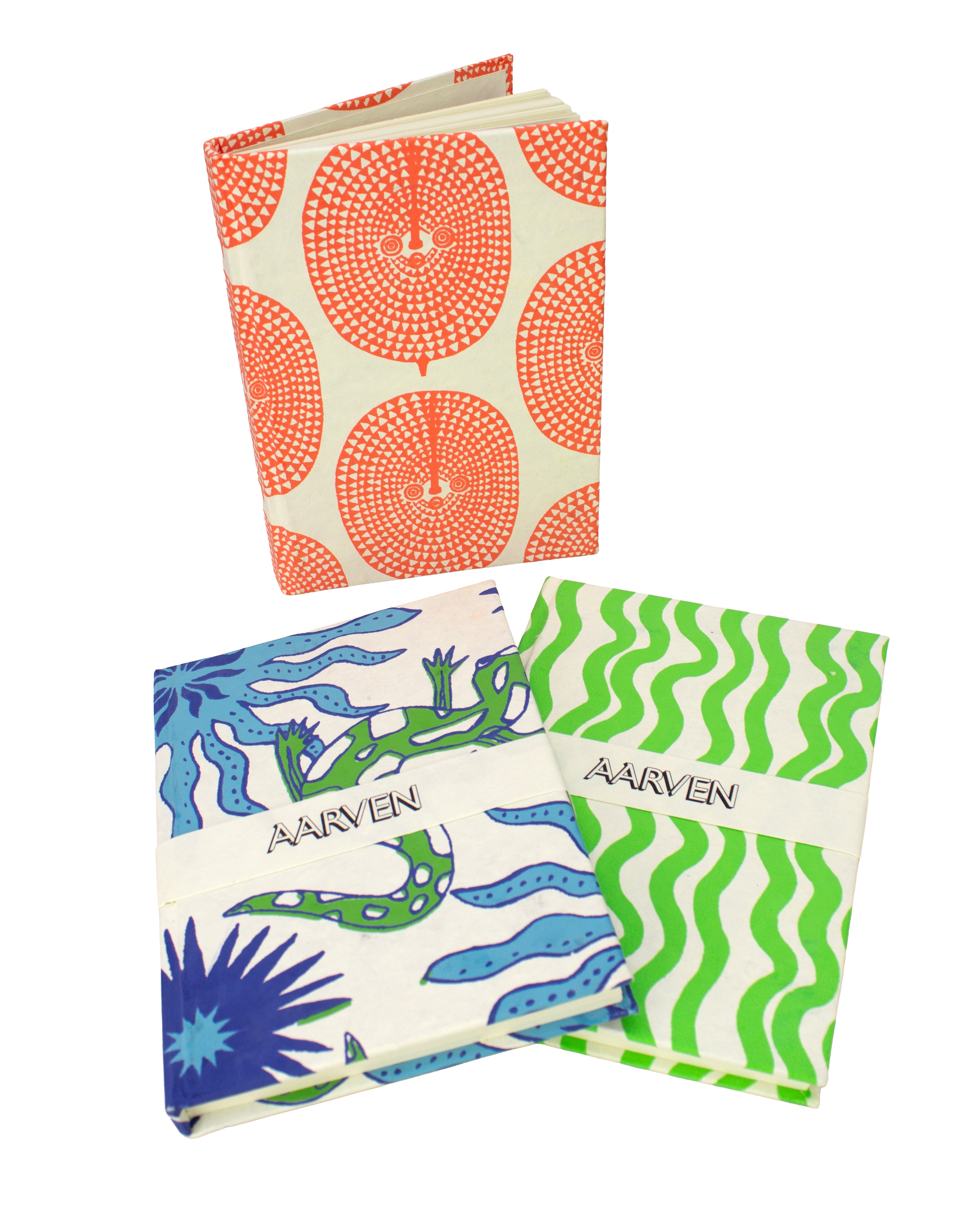Handmade luxury notebook set of three with screen printed cover. Jot down your ideas in style with our hardback notebooks. Carefully handmade using recycled paper and finished with our signature colourful prints.