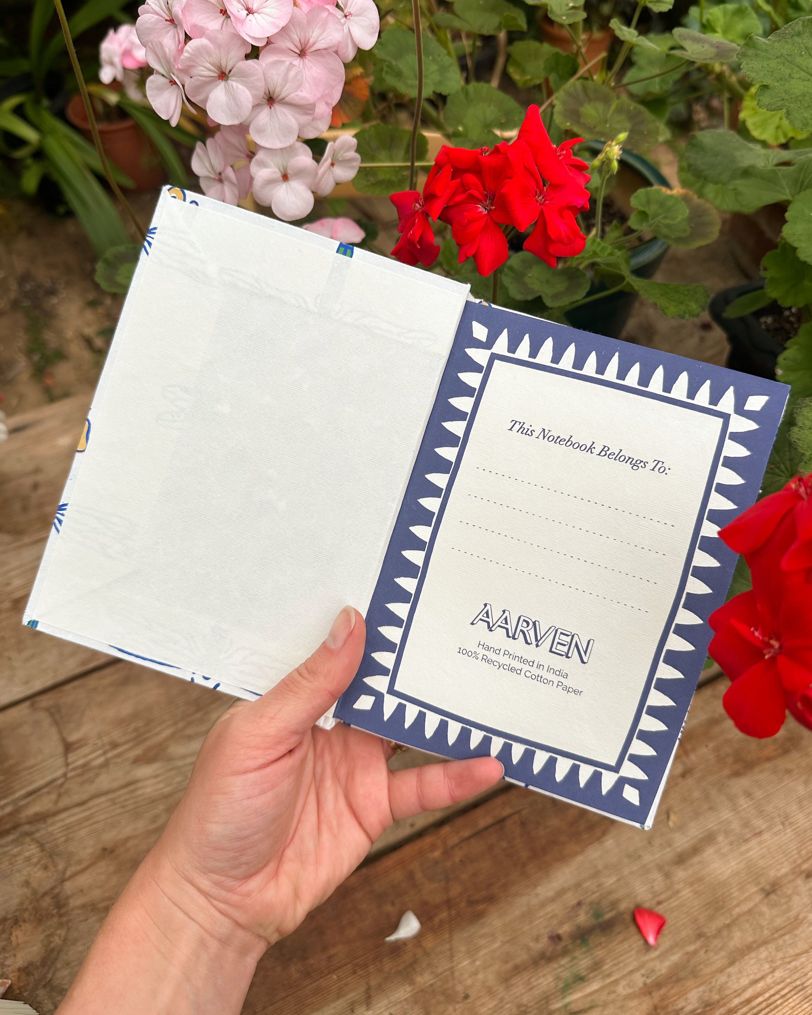 Bound and filled with plain pages, allowing your creativity to flow. The perfect addition to your bag or desk. Your new go-to for recording your brightest ideas. Choose from one of 6 signature prints; Dancing Lizards, Orange Sun Mask, Green Ganges, Indian Toile, Water Lilies or Dragonflies.