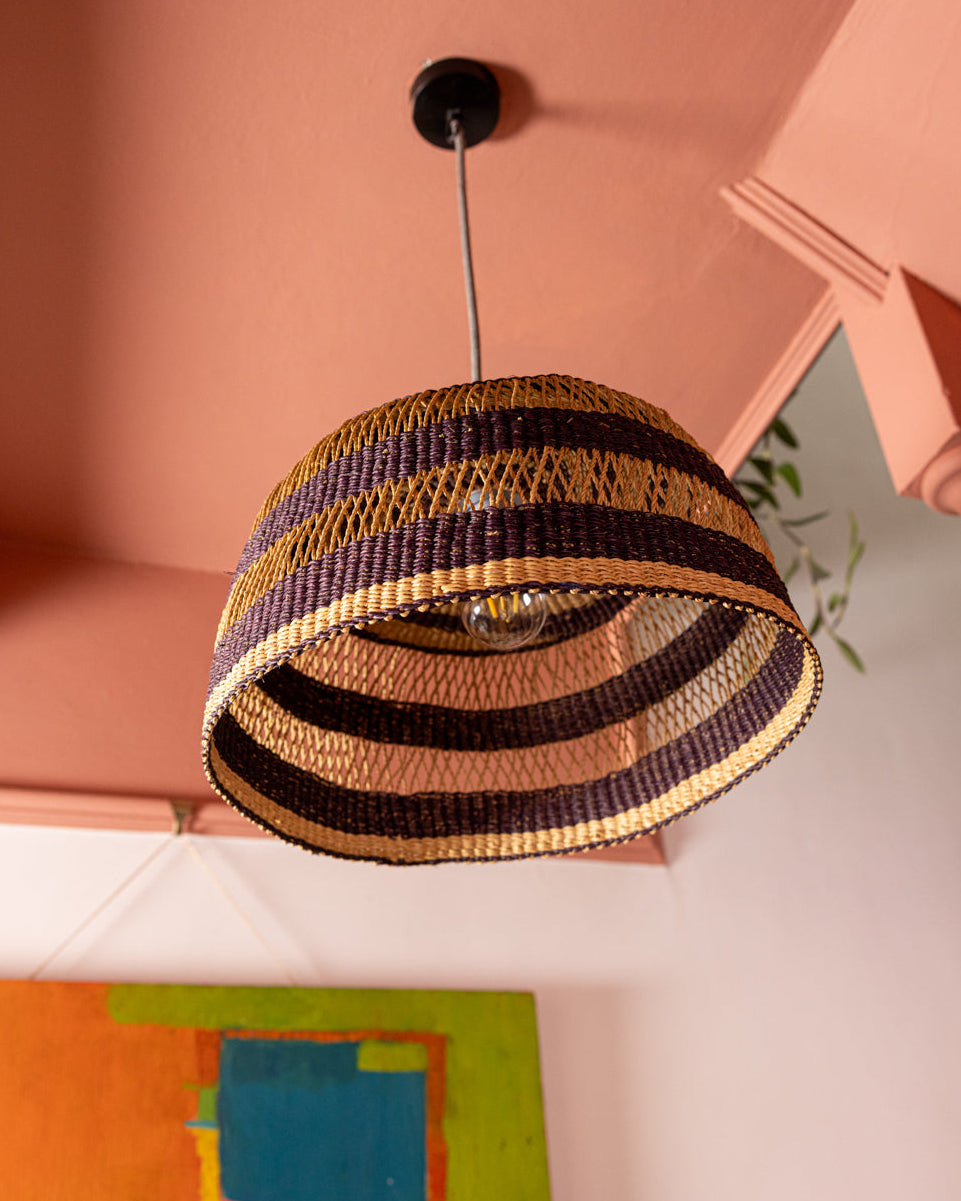 Bring dynamic design and artisanal charm to your home with AARVEN’s Ghanaian Handwoven Light Shade in 'Whirlwind'. This eye-catching rattan ceiling pendant lamp shade features a swirling woven pattern inspired by movement and energy. Handcrafted by skilled artisans in Ghana, each wicker lightshade celebrates age-old weaving traditions and sustainable materials.