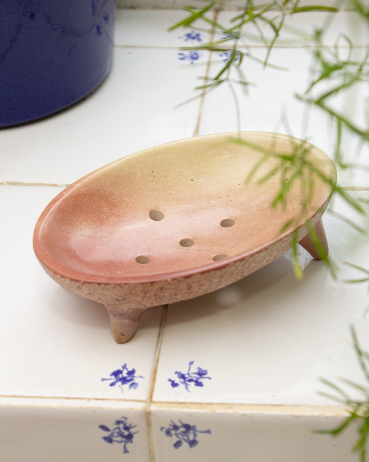 Crafted from naturally quarried Kenyan soapstone, this elegant soap holder combines a beautifully tactile contrast of textured outer edges and a silky-smooth polished surface. Raised legs create a refined, modern silhouette while allowing airflow beneath the soap, helping it dry quickly and last longer. Five drainage holes prevent excess water build-up, making it as practical as it is beautiful.