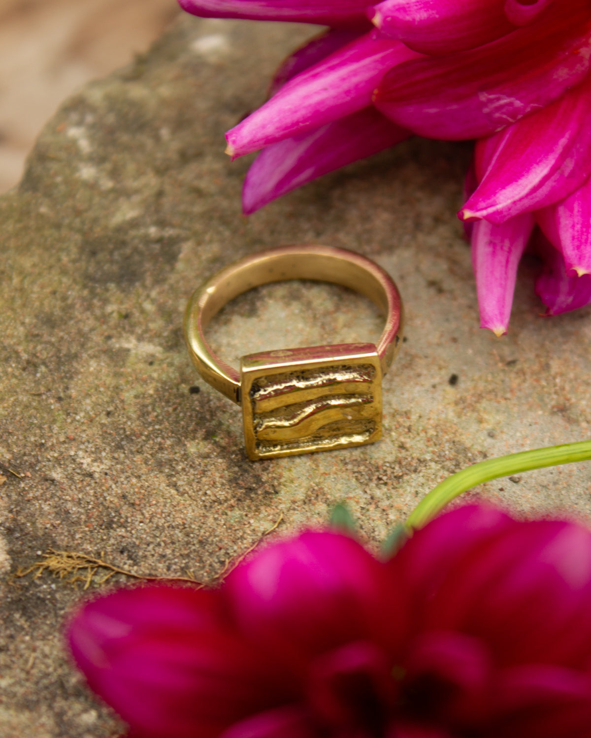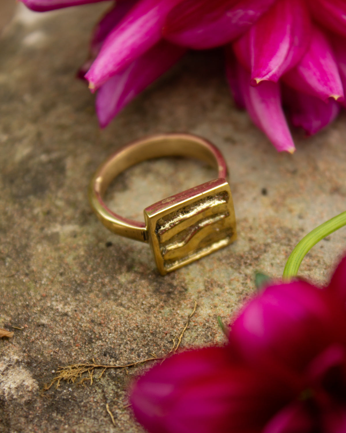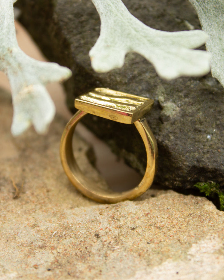 Cast from high-quality recycled brass, this ring is an excellent example of Kenyan craftsmanship. Ethically made by husband and wife team, Anton and Benta, in Kenya. The gold tone finish gives it a warm, smooth shine.