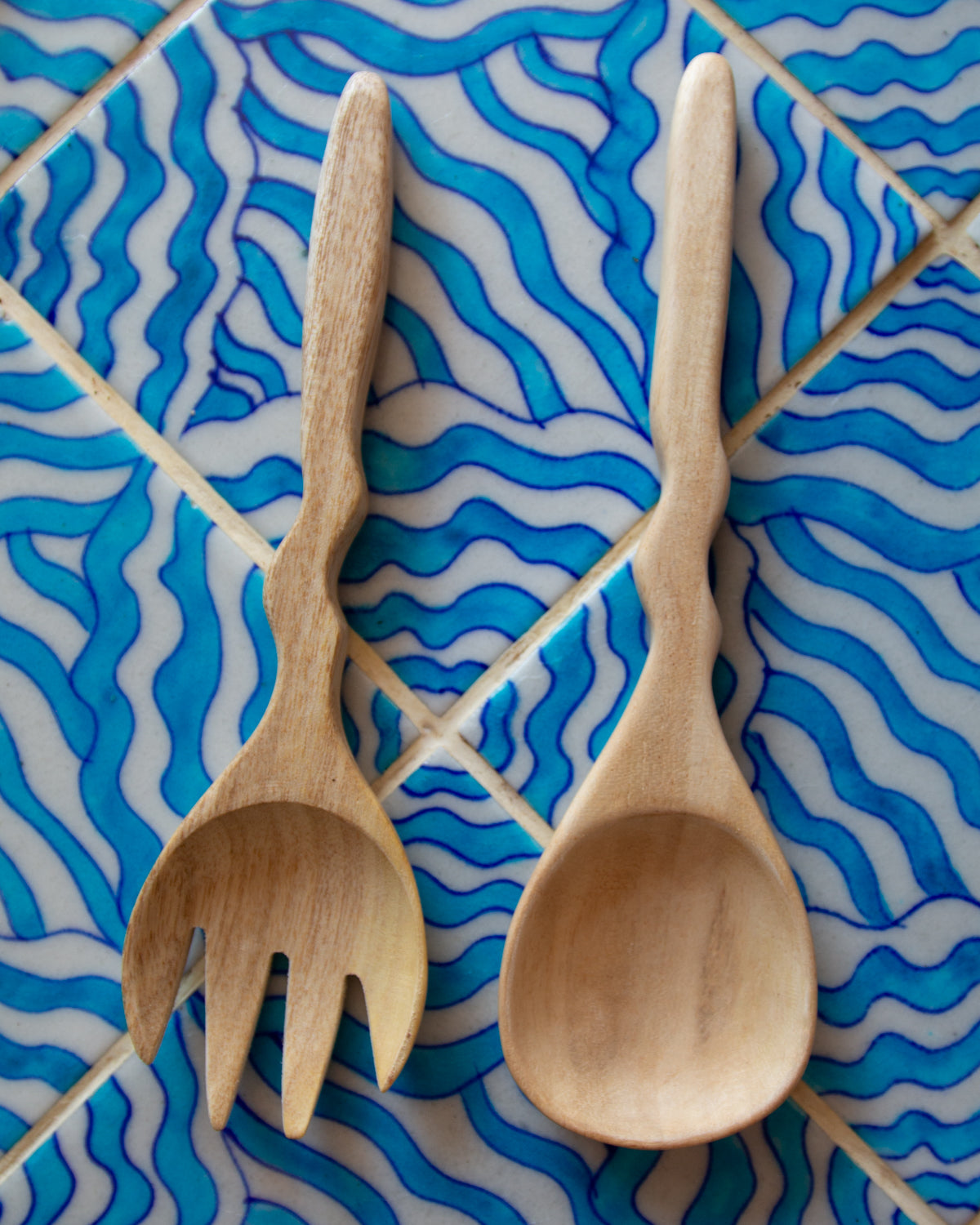 Add an artistic touch to your kitchen with our exclusive AARVEN Indian Wave Wooden Salad Servers and celebrate the beauty of sustainable, global craftsmanship with every meal.