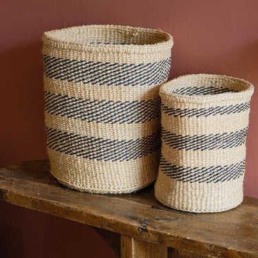Kenyan Sisal Basket 'Grey Stripes' Medium