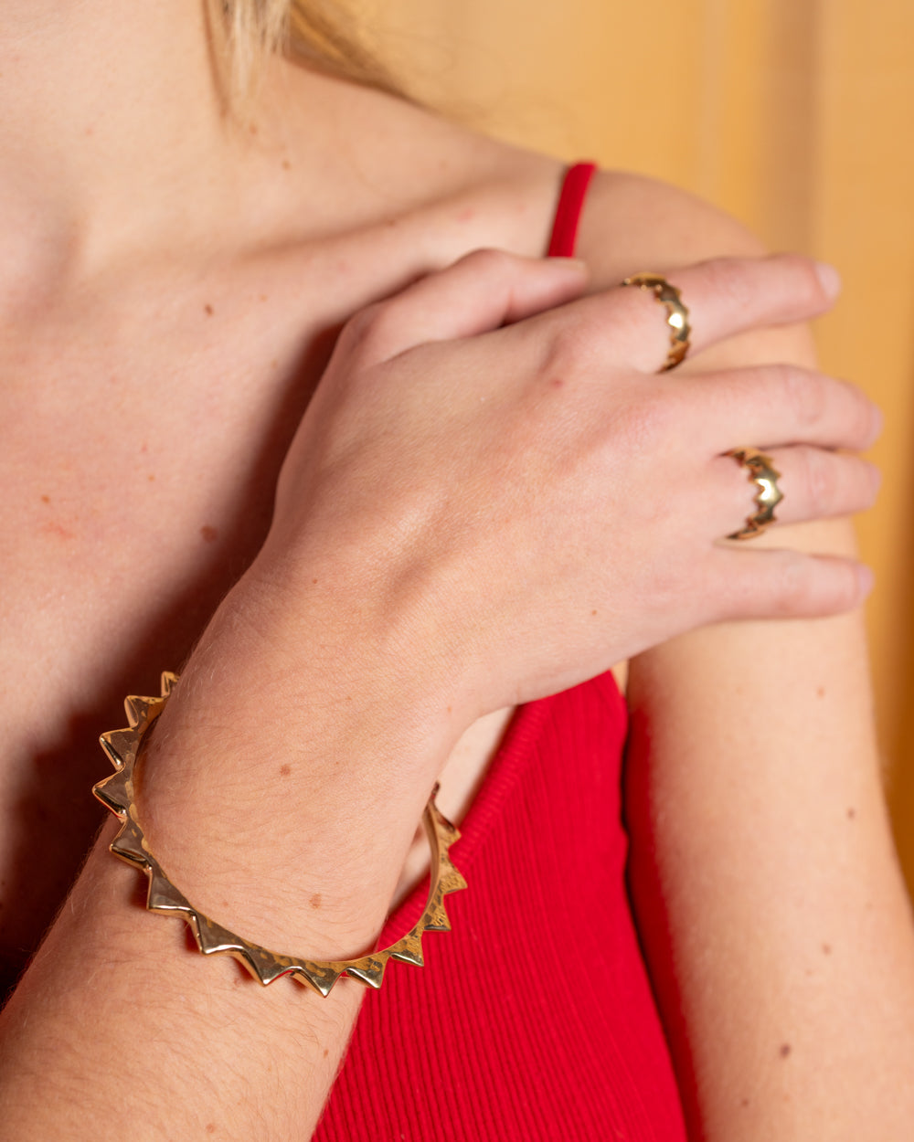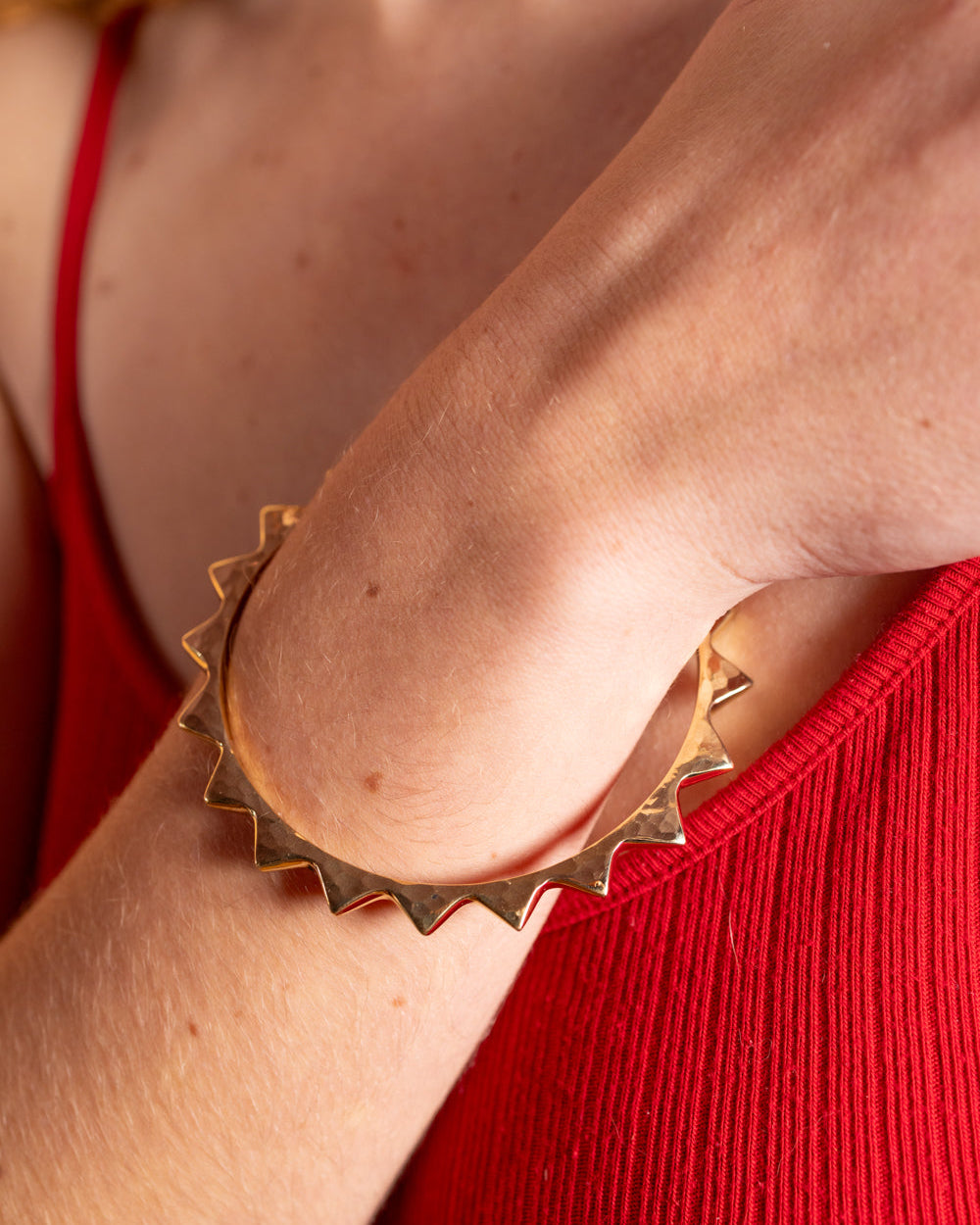 Inspired by shimmering starlight, this Stardust Mamba Bangle is made with highly polished recycled gold-tone brass. Hand-hammered for a distinctive and natural texture.