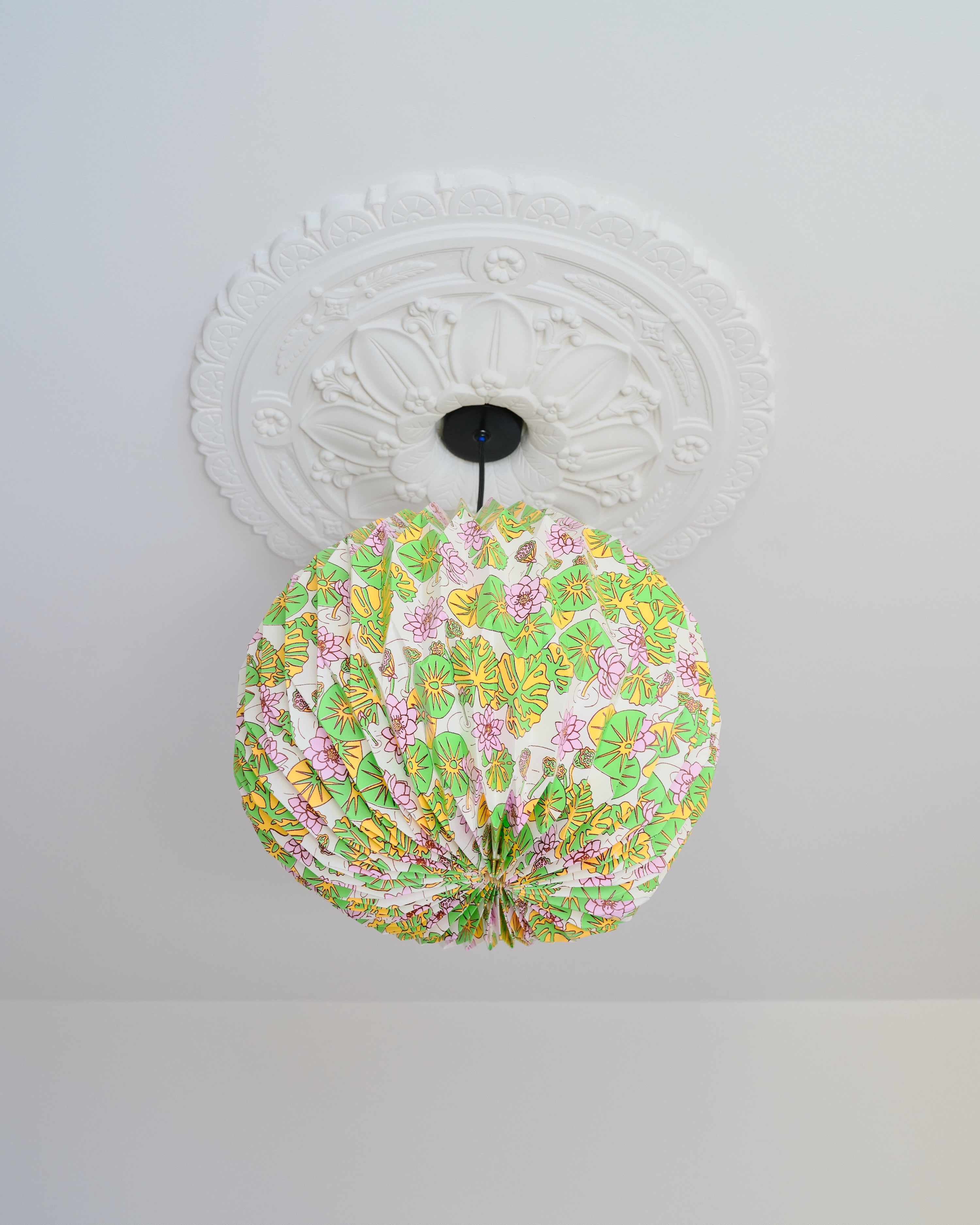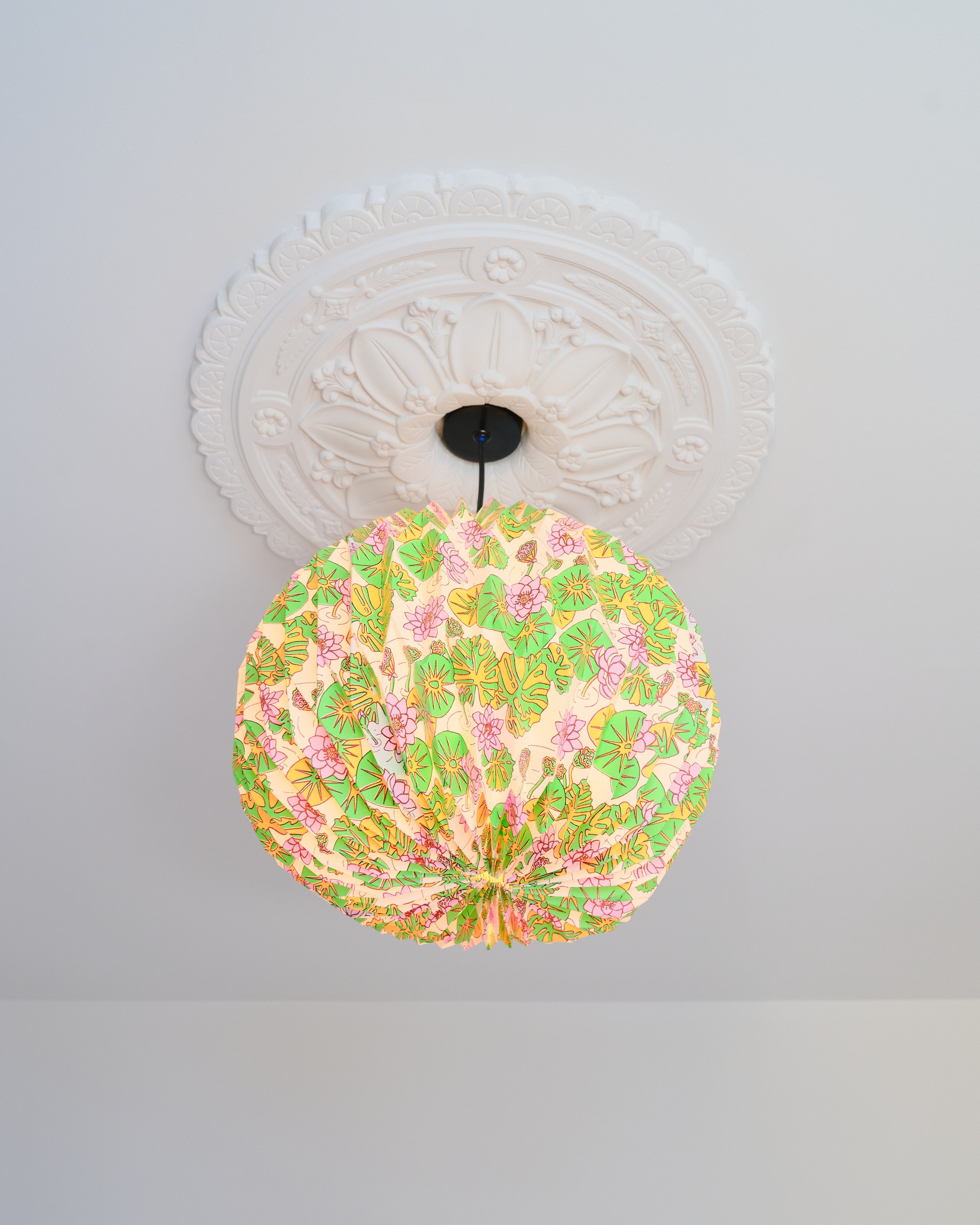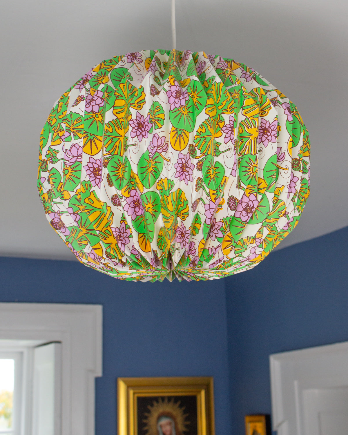 Welcome a warm ambience with AARVEN’s Water Lilies paper ceiling lightshade. Handmade by expert artisans in India, this paper lantern light shade is easy to hang and clean. Our signature contemporary light shade was hand-screen-printed with our original pattern. Enhance your living room, bedroom, or dining room with this designer pendant paper lightshade.