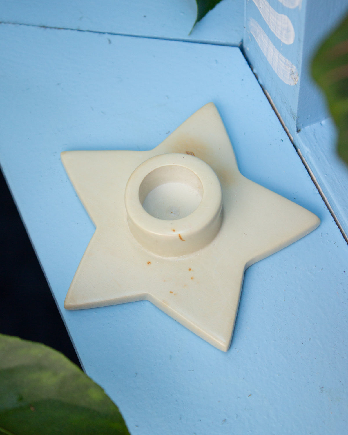 Soapstone Star Candle Holder Soft White