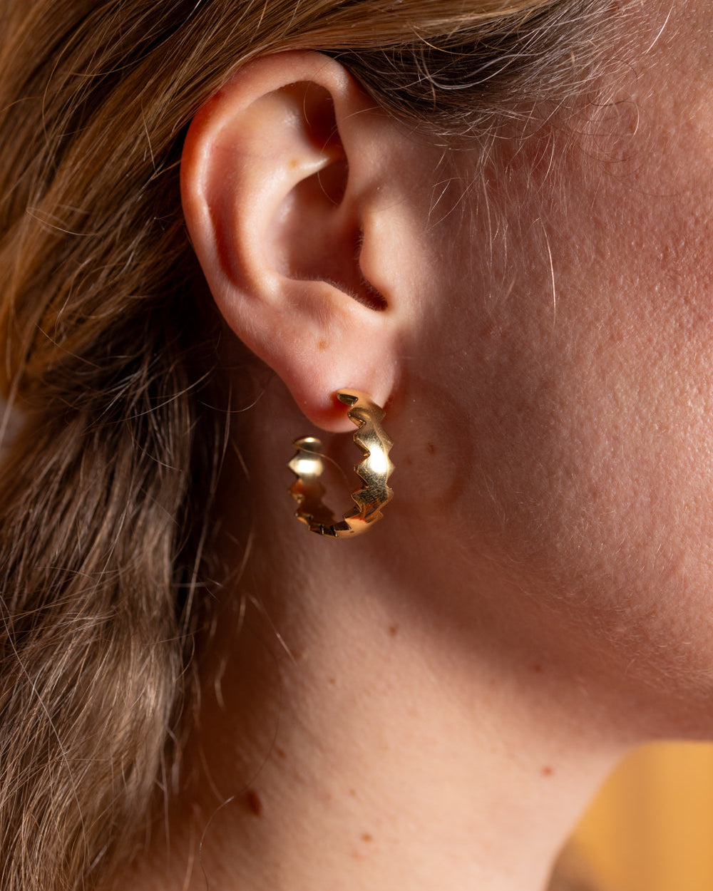 These medium hoop earrings have a smooth shine finish, and were ethically handmade by artisans in Kenya. Crafted from recycled brass, the gold tone gives them a gorgeous warm glow, just like sprite lightning.