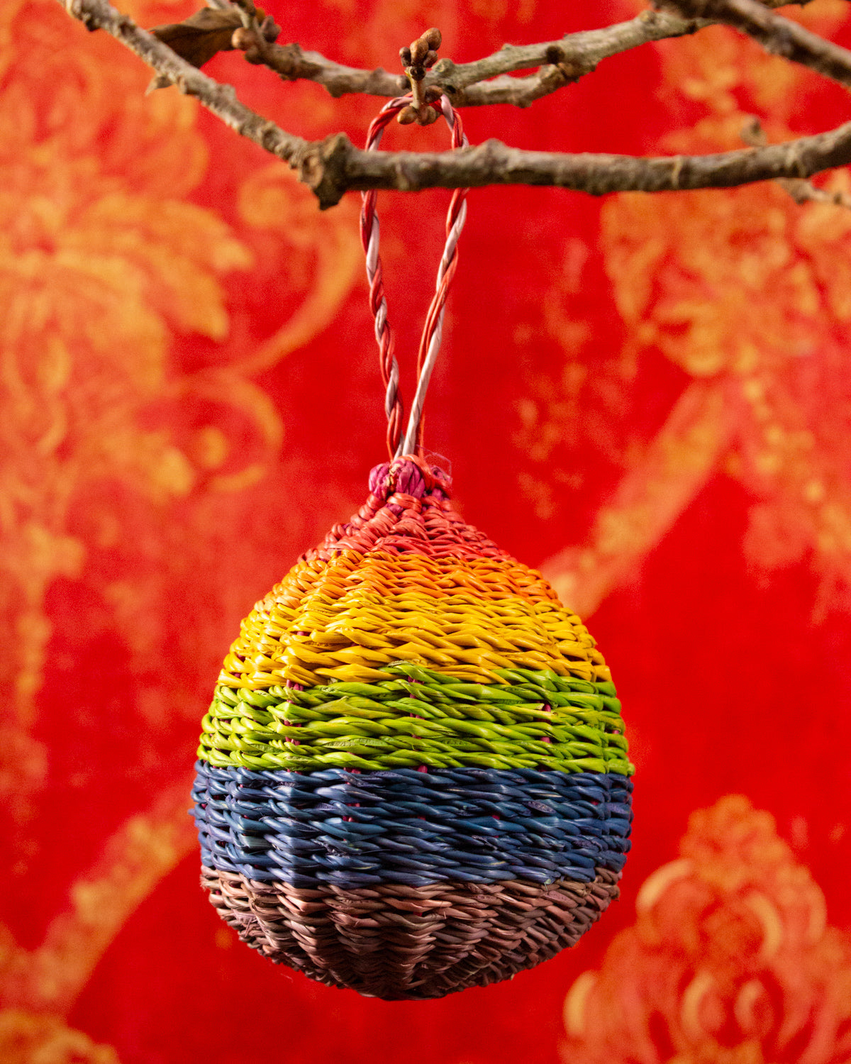 Our handwoven baubles from Ghana, are made by a talented group of artisans based in the Upper East Region, under the Burkina Fasso border. The ornaments are made with indigenous Elephant Grass which grows abundantly in this hot, dry area.