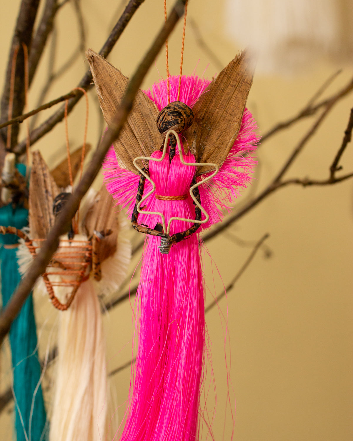 Add meaning and style to your Christmas tree, wreaths or festive tablescapes with this pink angel ornament, exclusively from AARVEN. Add some festive magic to your home whilst supporting fair wages and traditional craftsmanship through artisan-made Christmas decorations.