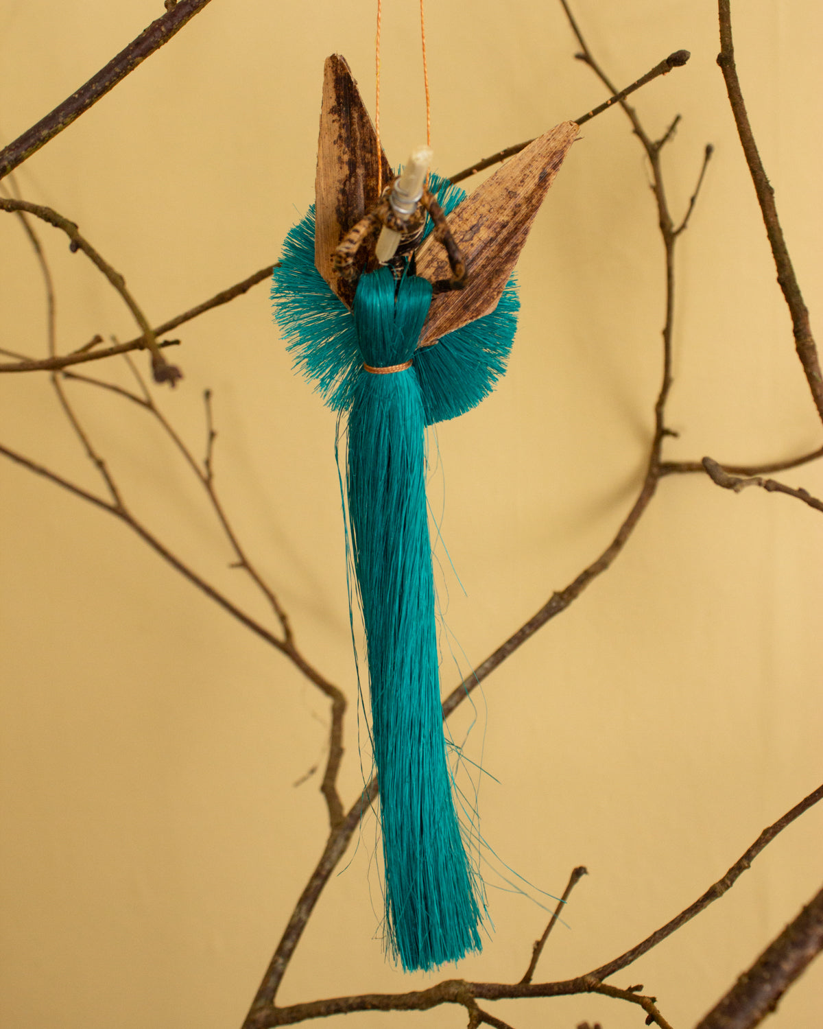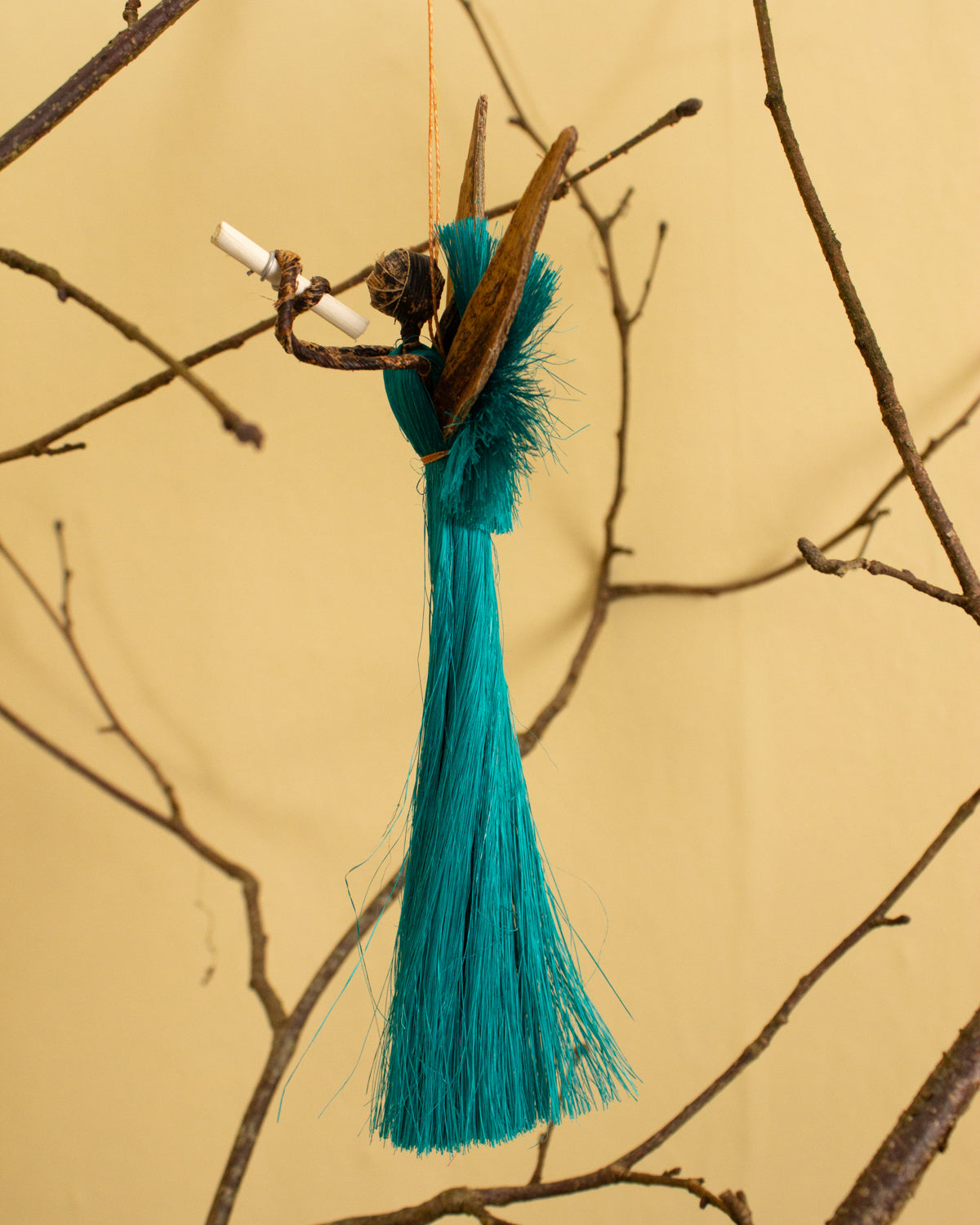 Bring a touch of handmade charm to your Christmas with our Ugandan Angel Decoration in 'Teal.' Meticulously crafted by skilled artisans in Uganda, this unique Christmas ornament brings an authentic touch of African handicraft to your tree. Made from locally sourced natural materials, each angel features delicately woven wings, hand-twisted details and a beautifully flowing skirt.