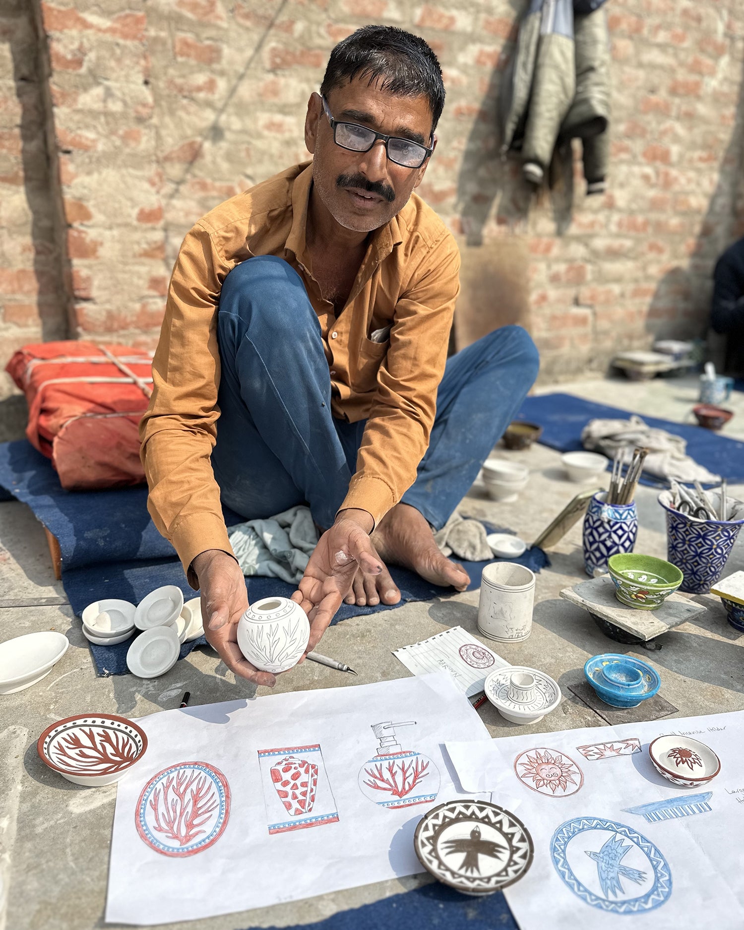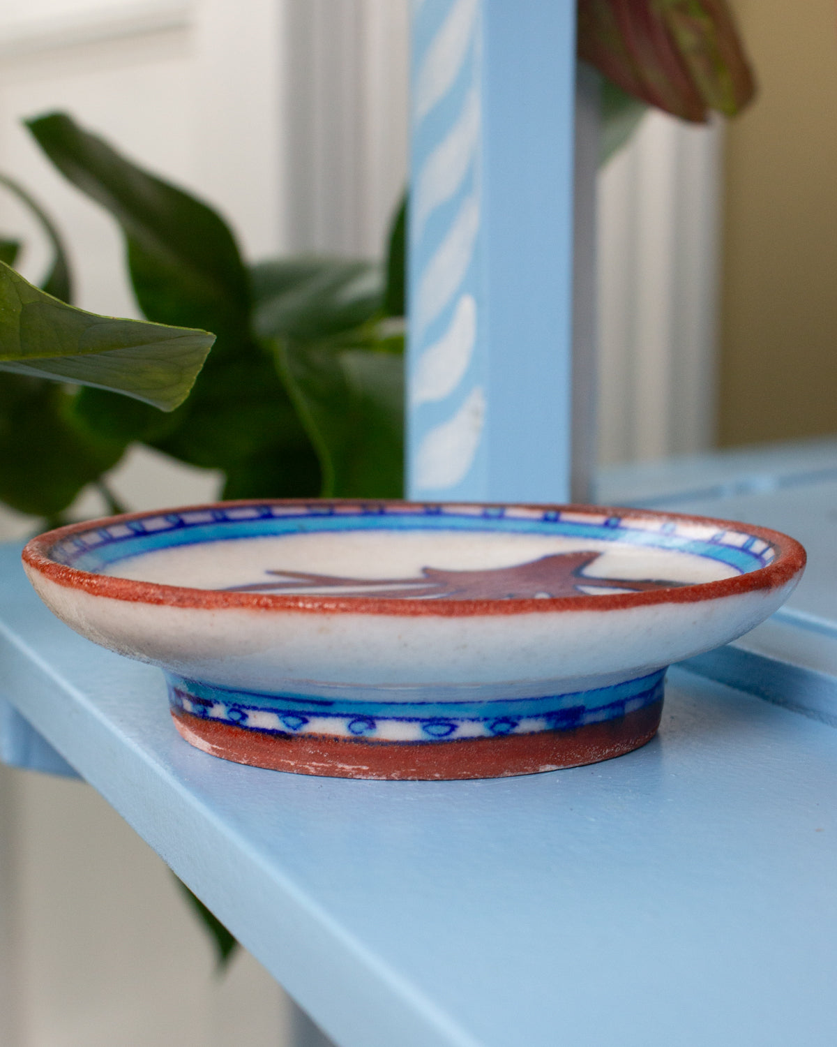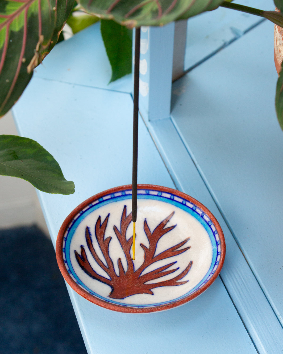 Each incense dish is made using the centuries-old Jaipur Blue Pottery technique, celebrated for its rich cyan glazes and eco-conscious craftsmanship. These methods were passed down over 10 generations. Each dish is a little different, giving it that beautiful human touch. Read more about our artisans here.