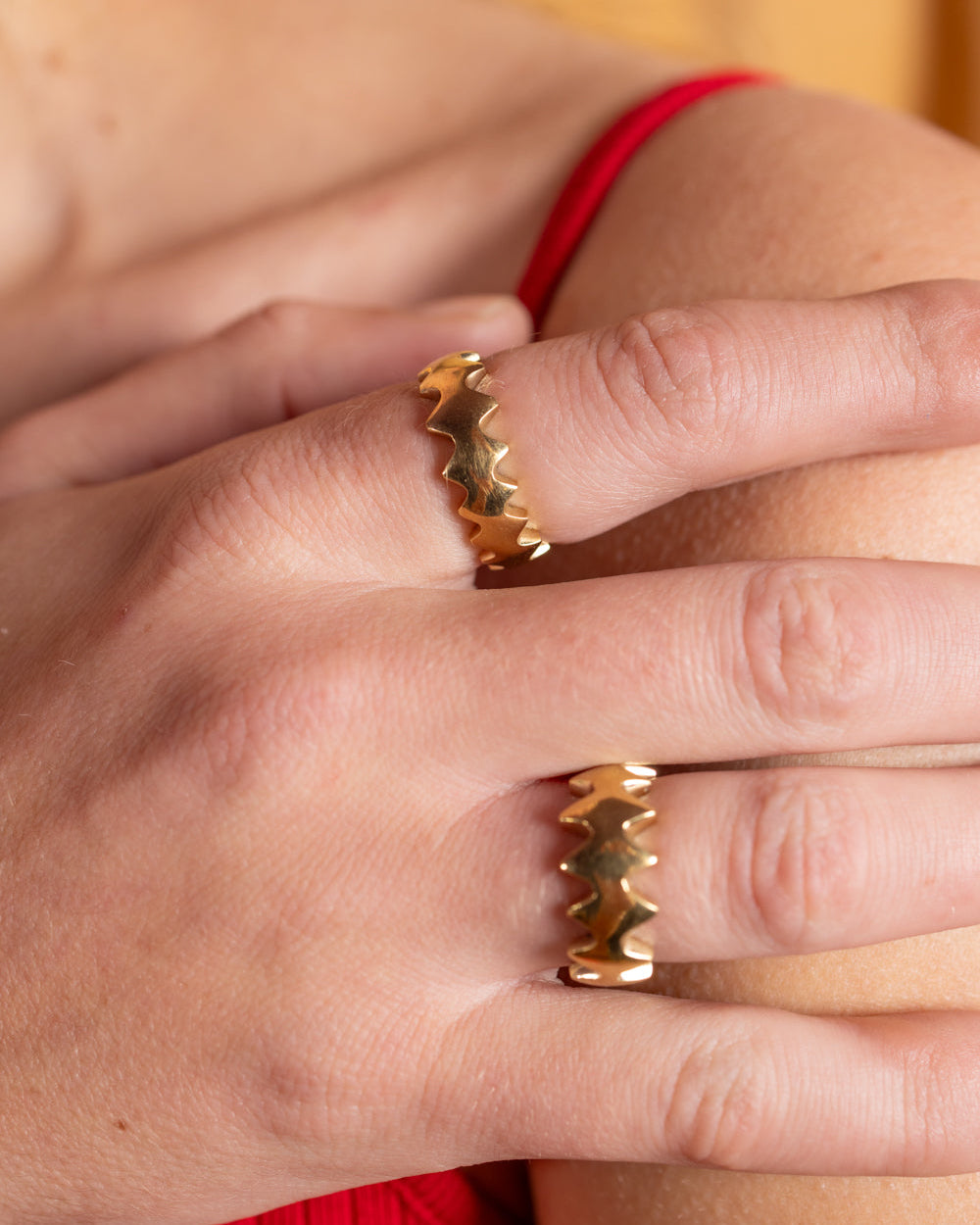 This zigzag style ring has a smooth shine finish, and is ethically handmade by artisans in Kenya. Crafted from recycled brass, the gold tone gives them a gorgeous warm glow, just like sprite lightning.