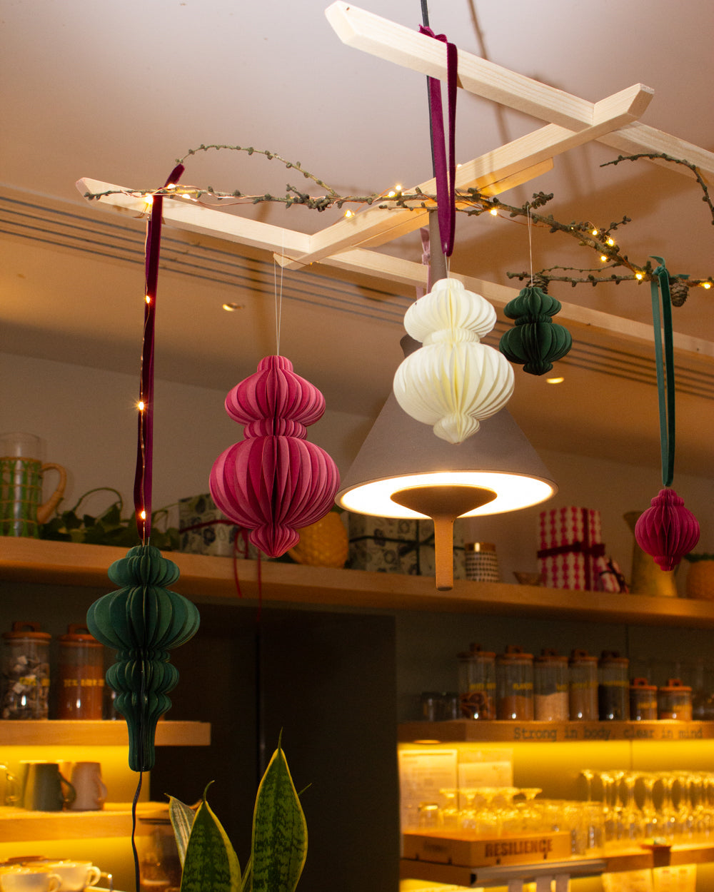 Handmade Indian hanging decoration, crafted using 100% recycled paper. Vibrant and bohemian with enough simplicity to match any home style. These beautiful baubles can be hung individually or grouped with others. Perfect for hanging in windows, for celebrations, events, bedrooms, living rooms, and more!