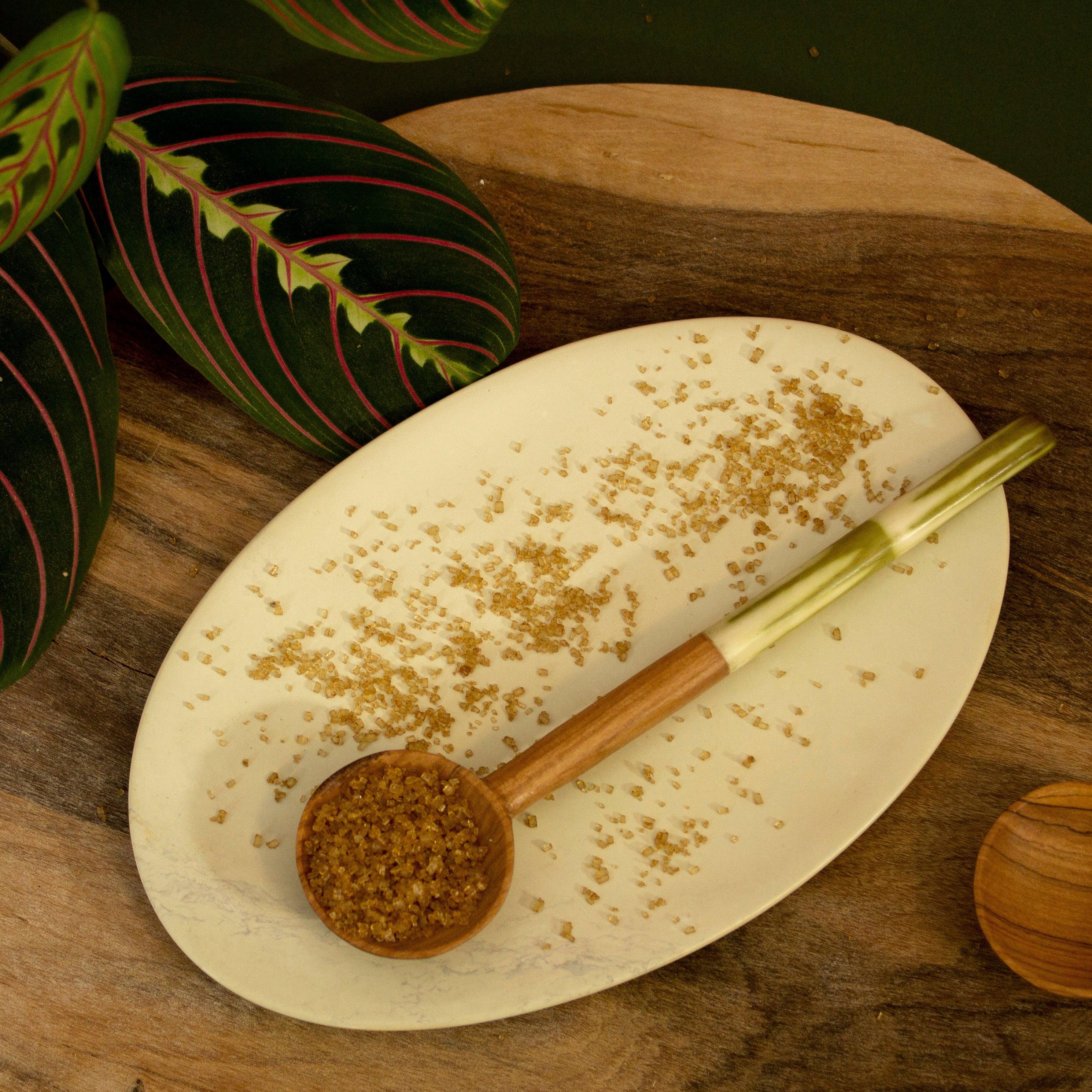 Olive Wood Sugar Spoon With Green Batik Handle